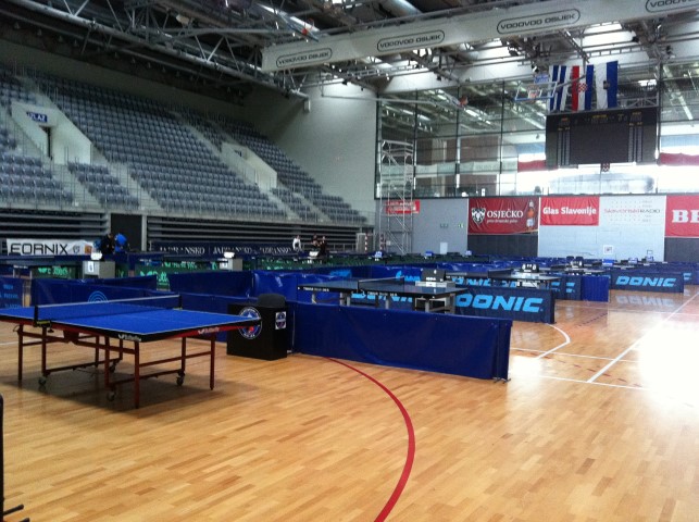 Susreti se održavaju u prostoru 10 x 5 m ograđenom arenama,  na licenciranim stolovima (oznaka ITTF)  - predviđeno je natjecanje na 12 stolova