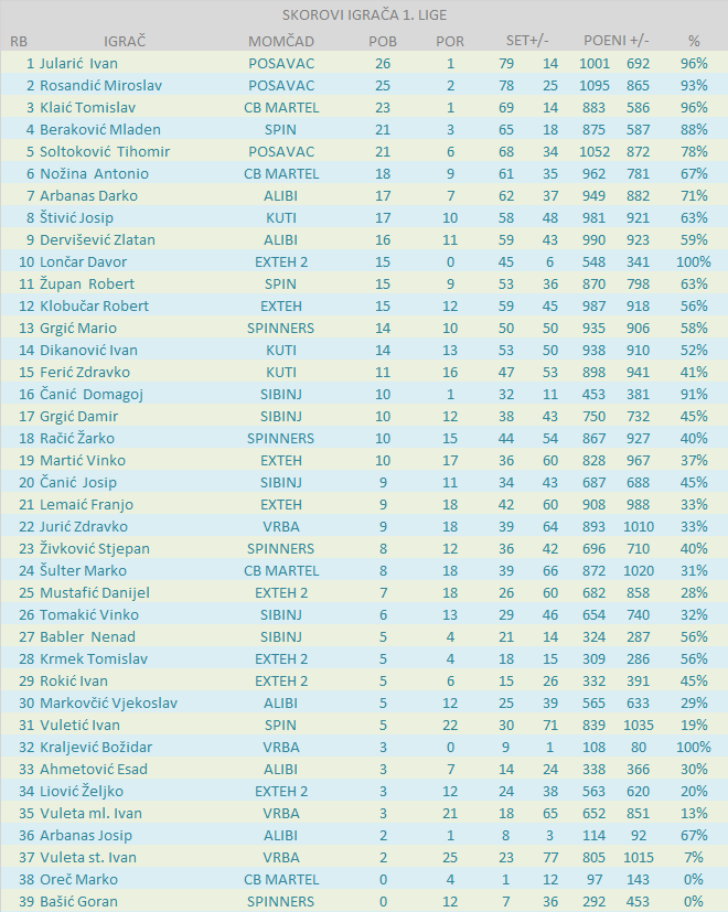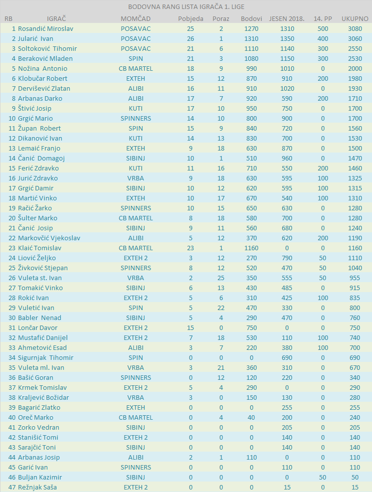 BODOVNA RANG LISTA IGRAČA 1. LIGE: