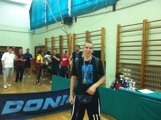Na žalost ja više neću moći napuniti Dom sportova u Sredancima jer sam ljude shebao  Grin , ali mene ponajviše zanima vidjeti neke pojedince poput Akana i Želje Liovića kako pišaju od sreće kad ja izgubim poen  lud?!. Ako pogledate slike vidjet ćete njihovo veselje i kod proglašenja i primanja medalja. Svi misle da se raduju medalji u parovima, a u stvari se raduju mom porazu  gitara Iako ne znam čime sam zaslužio provociranje s njihove strane jer mi je u takvoj atmosferi bilo jako nezgodno igrati  srednjaci Nisam naviknut na takve situacije, dobacivanja, kašljucanja i još mnogo raznoraznih zvukova u trenucima pune koncentracije na servis  place mi se  Ali kako kaže poslovica "što te ne ubije to te ojača" pa će valjda biti prilike već za 6 mjeseci namjestiti grupu sa njima dvojicom pa im pokazati neke stvari  box1