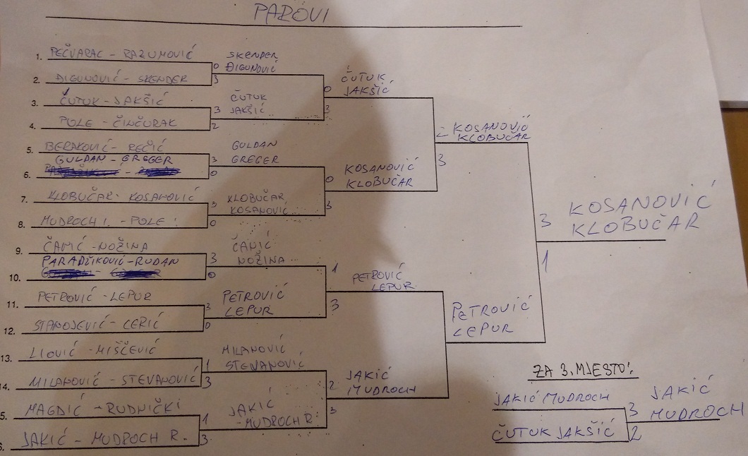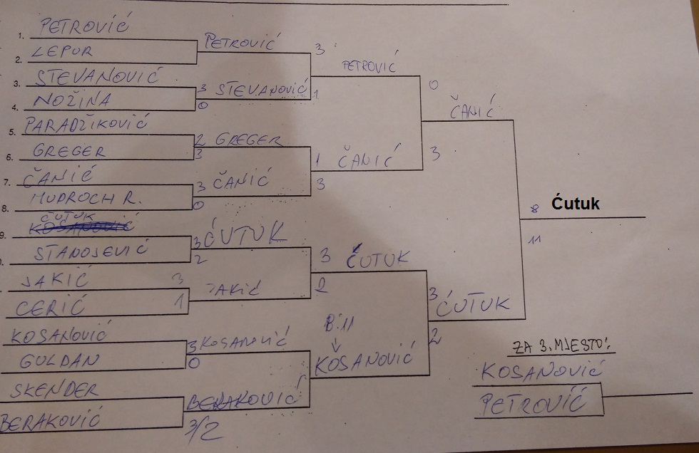 . Iako sa 61 godinu na leđima Ćutuk je pokazao smirenost u petim setovima pa je tako dobio Stanojevića 3-2, Jakića 3-2, Kosanovića 3-2 i na kraju Domca 3-0. Čestitke Ćutuku....