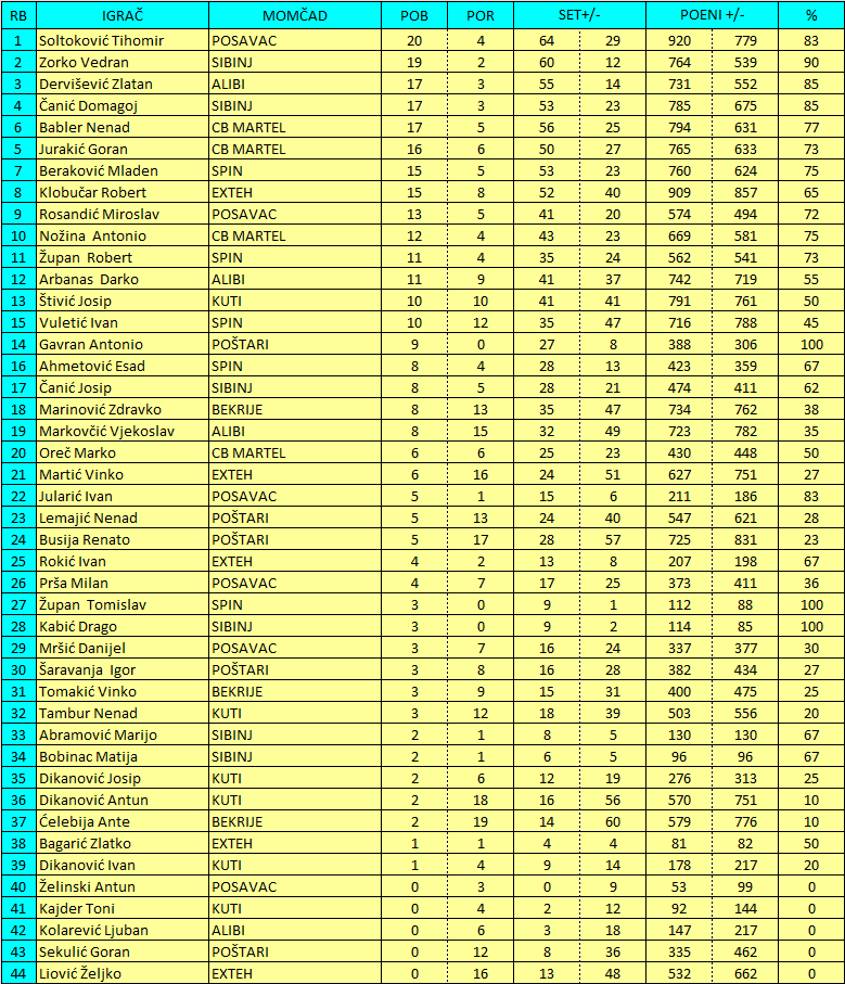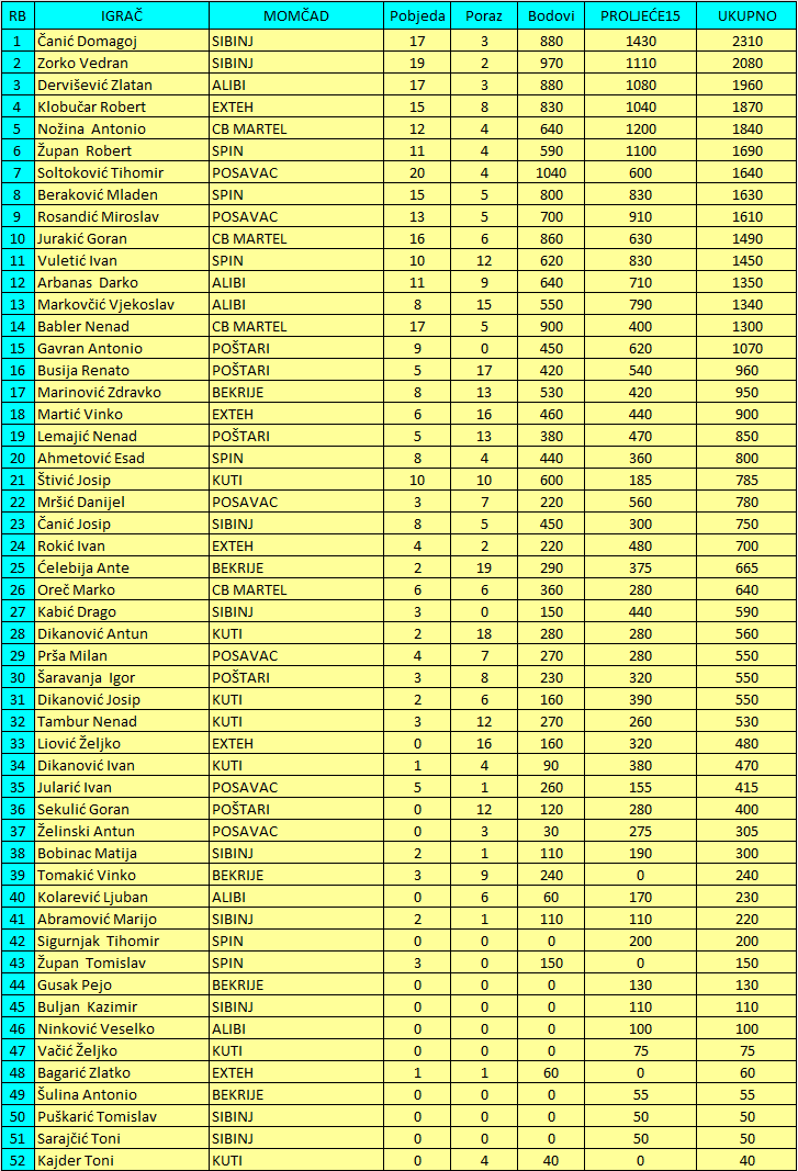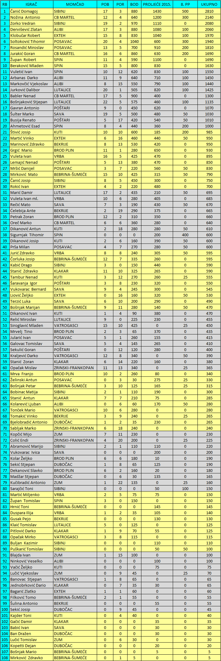 BODOVNA RANG LISTA IGRAČA 1. LIGE: