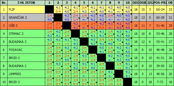 Po tome ekipa Strmca 2 ide na 4 mjesto,a Brod 2 ostaje na istom mjestu zbog međusobno lošijeg omjera sa Posavcem.