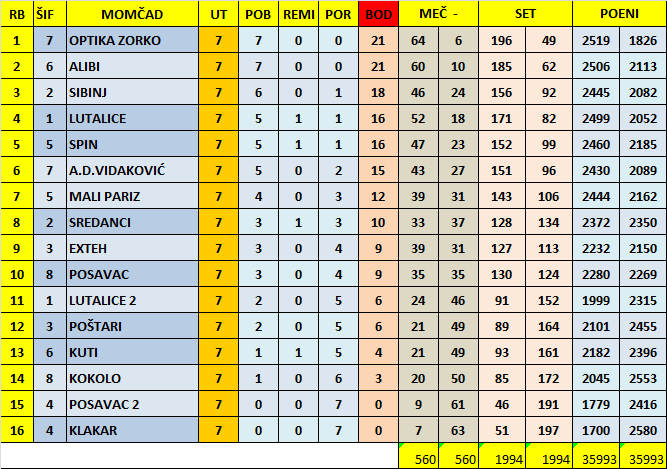 Vidi se dolje ukupni broj odigranih mečeva,setova i poena.