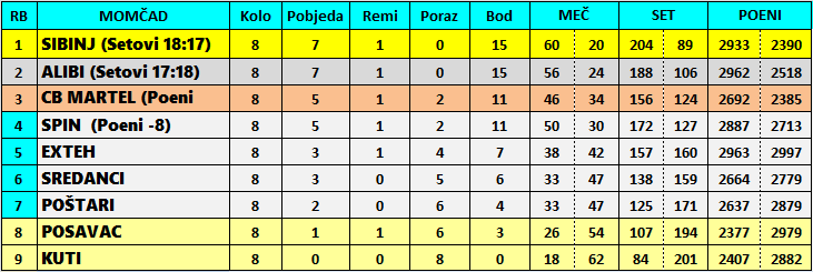 KRIŽNA TABLICA S REZULTATIMA SUSRETA: