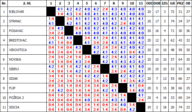 TABLICA 2. HRVATSKA LIGA - REGIJA SLAVONIJA ZAPAD