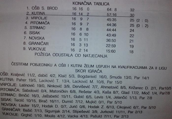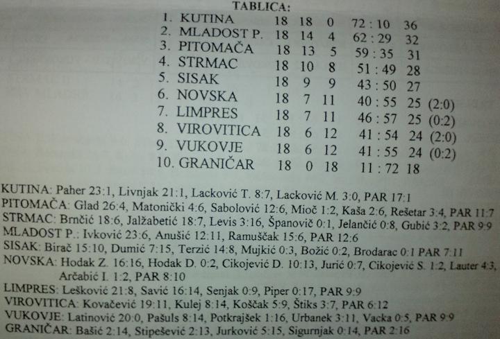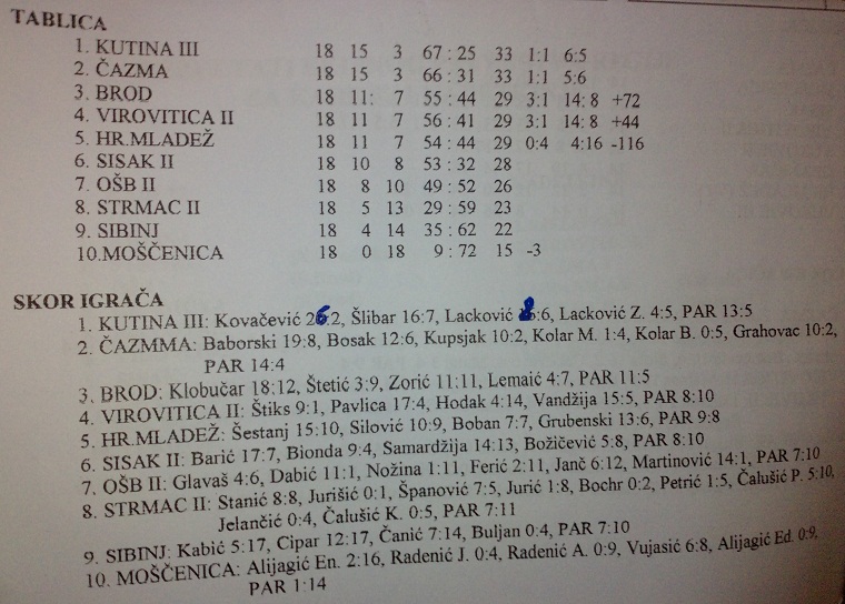 Konačna tablica tadašnje 3 HL koja se čini mi se igrala turnirskim načinom: