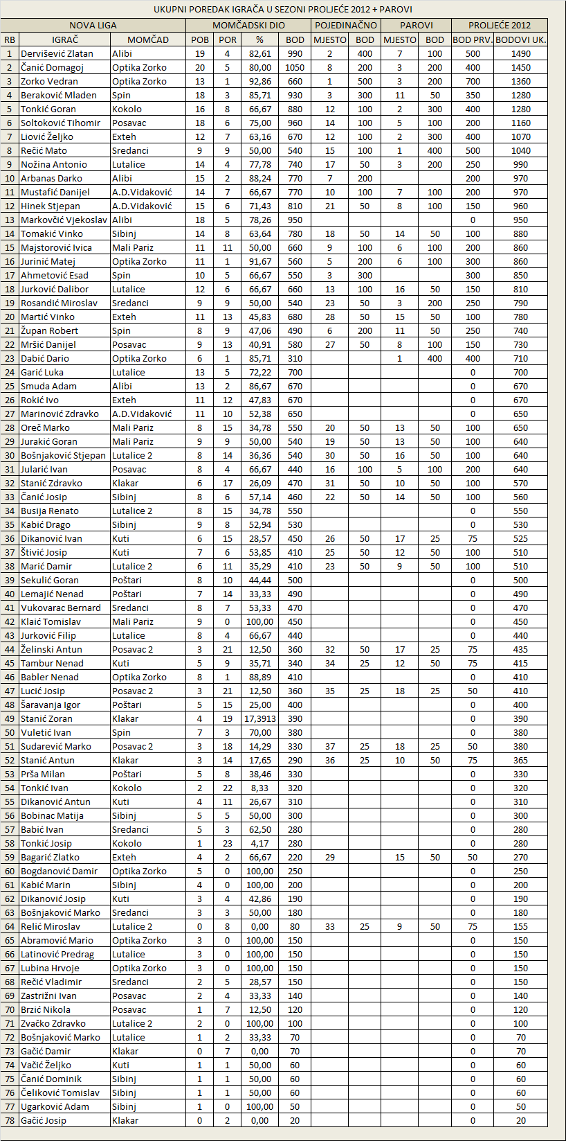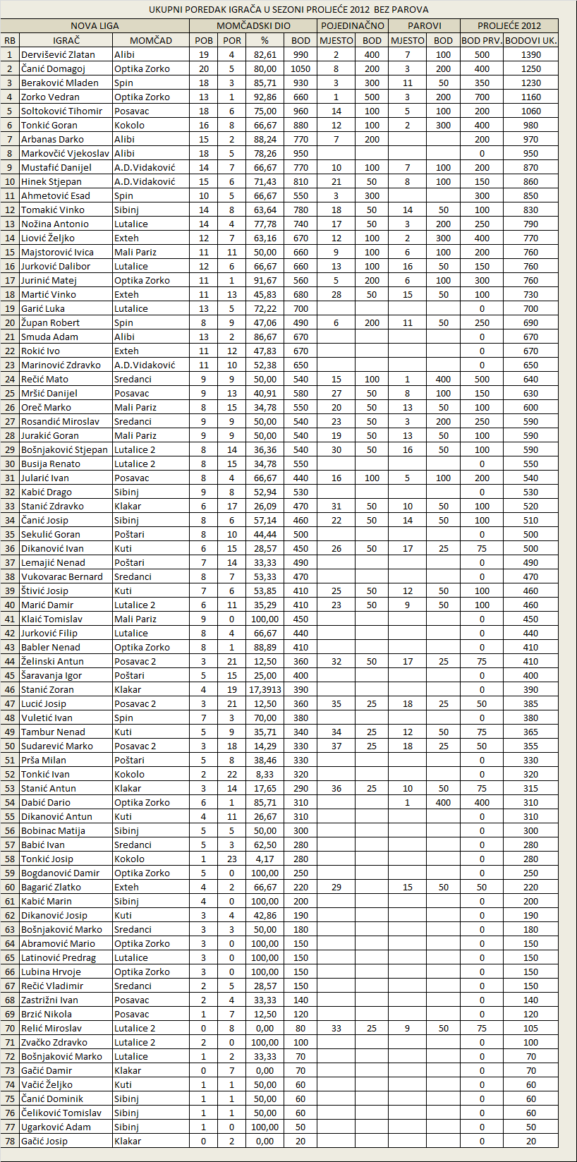 Uvijek možeš napraviti korekcije, dati manje bodova... Računaj parove, i da nekome smeta, javio bi se, a svi su rekli da je to dobro. I uvijek možeš na plenumu ako bude nezadovoljnih ljudi, promijeniti i maknuti to... A u najgorem slučaju, od ove godine ne treba računati bodove, već tek od sljedeće, ako misliš da uvijek ima nekih koji misle drugačije... Morat ću te razočarati, i reći da ti bodovoi nikome ništa ne znače